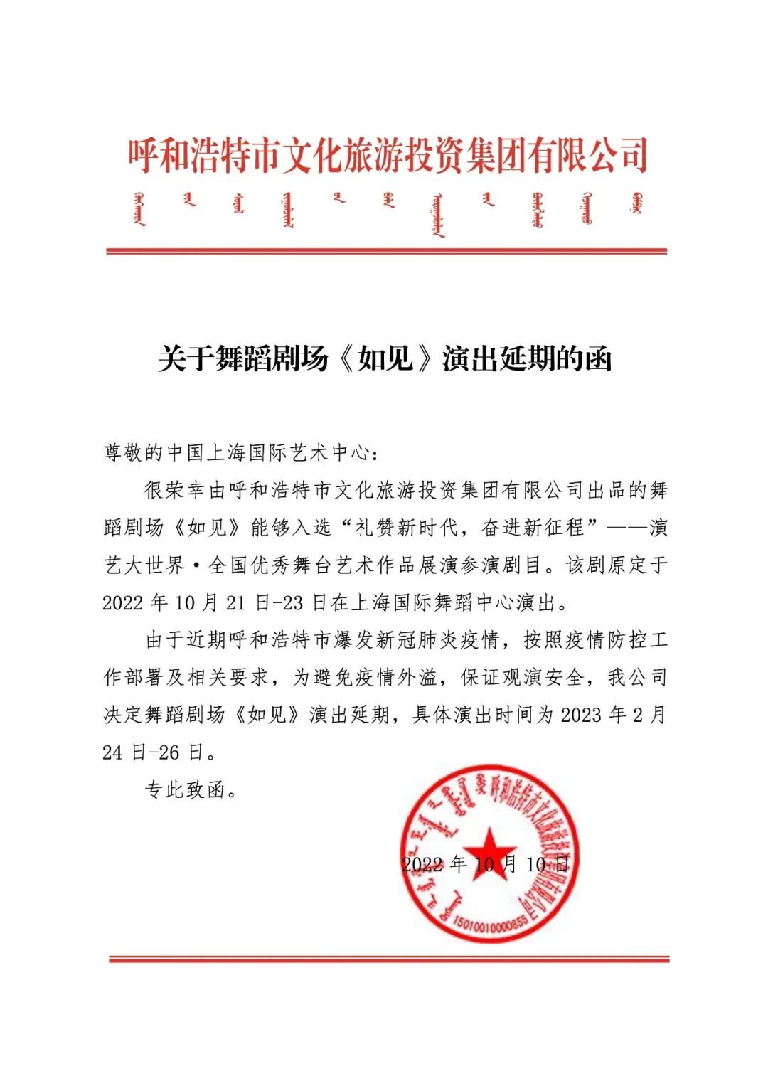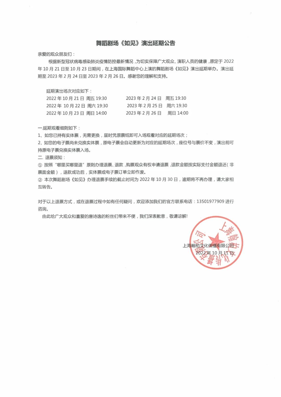 ② 本次舞蹈劇場《如見》辦理退票手續(xù)的截止時間為2022年10月30日,逾期將不再辦理,請大家相互轉(zhuǎn)告。