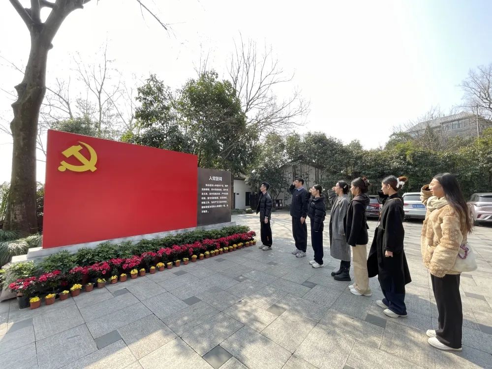 ? ? 參觀過后,支部黨員面對(duì)鮮紅的黨旗重溫入黨誓詞。