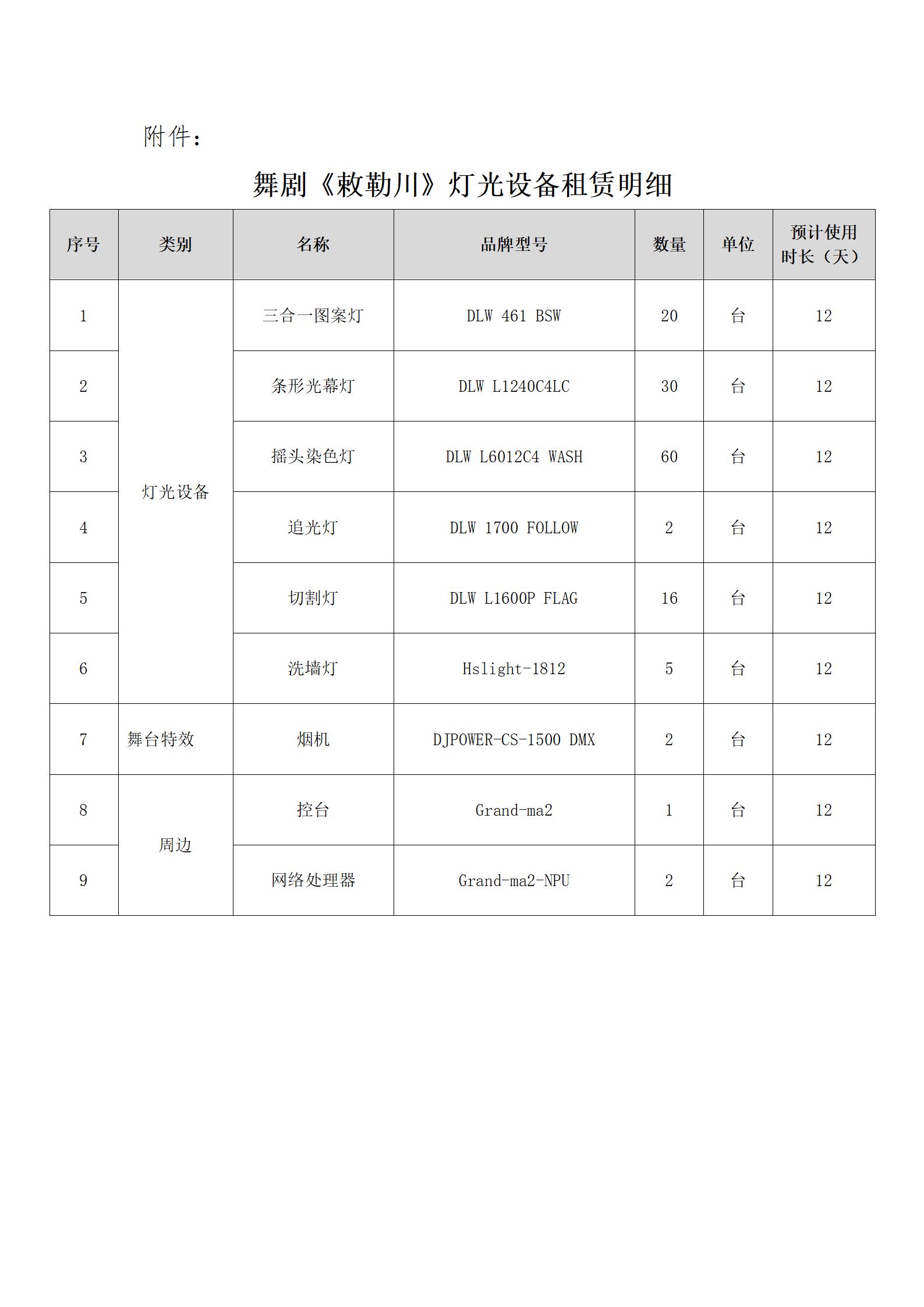 ? ? 附件:舞劇《敕勒川》燈光設備租賃明細